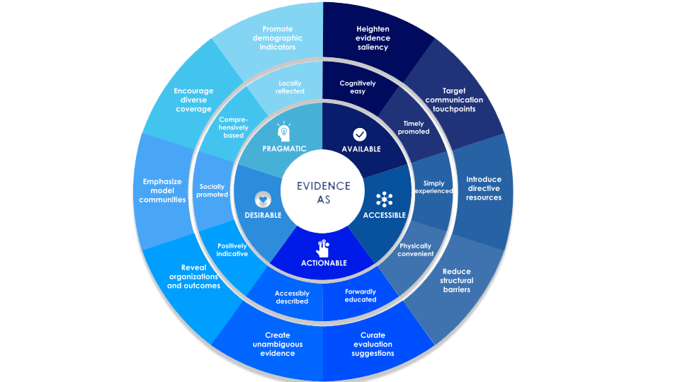 Ces résultats, associés aux leviers et cadres comportementaux pertinents, sont devenus le fondement du cadre d'utilisation des données probantes.