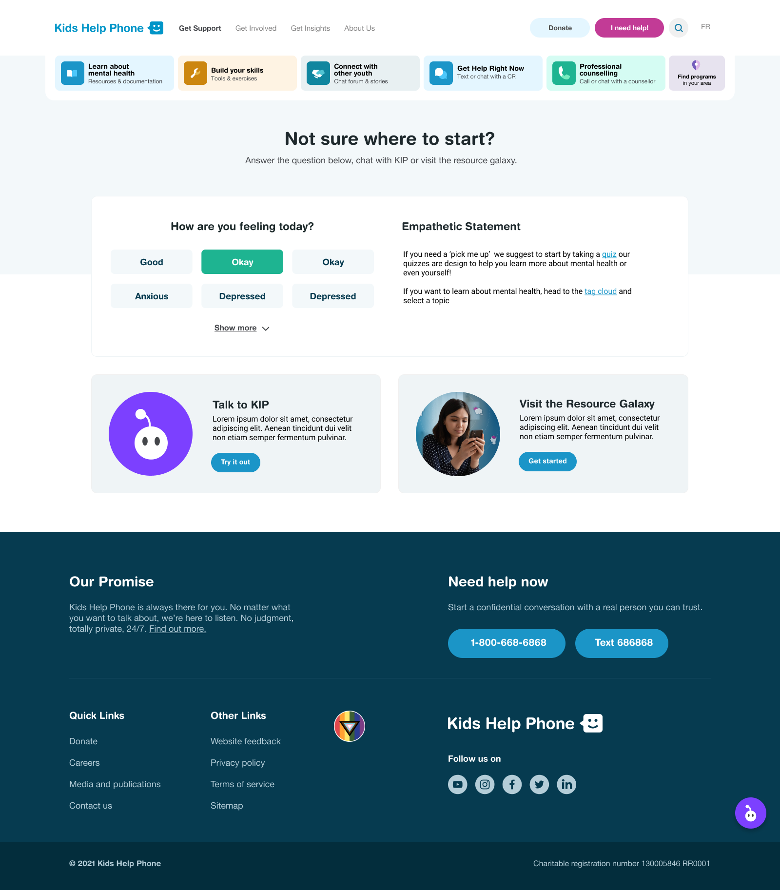 Avec des millions de jeunes qui visitent le site Web de Jeunesse, J'écoute chaque année, tous avec des antécédents, des besoins et des expériences différentes, la plateforme doit trouver un équilibre difficile : S'assurer que les utilisateurs ont accès à une immense quantité d'informations, à différents niveaux de soutien, tout en veillant à ce que ces informations restent facilement navigables - même pour un jeune en détresse.
