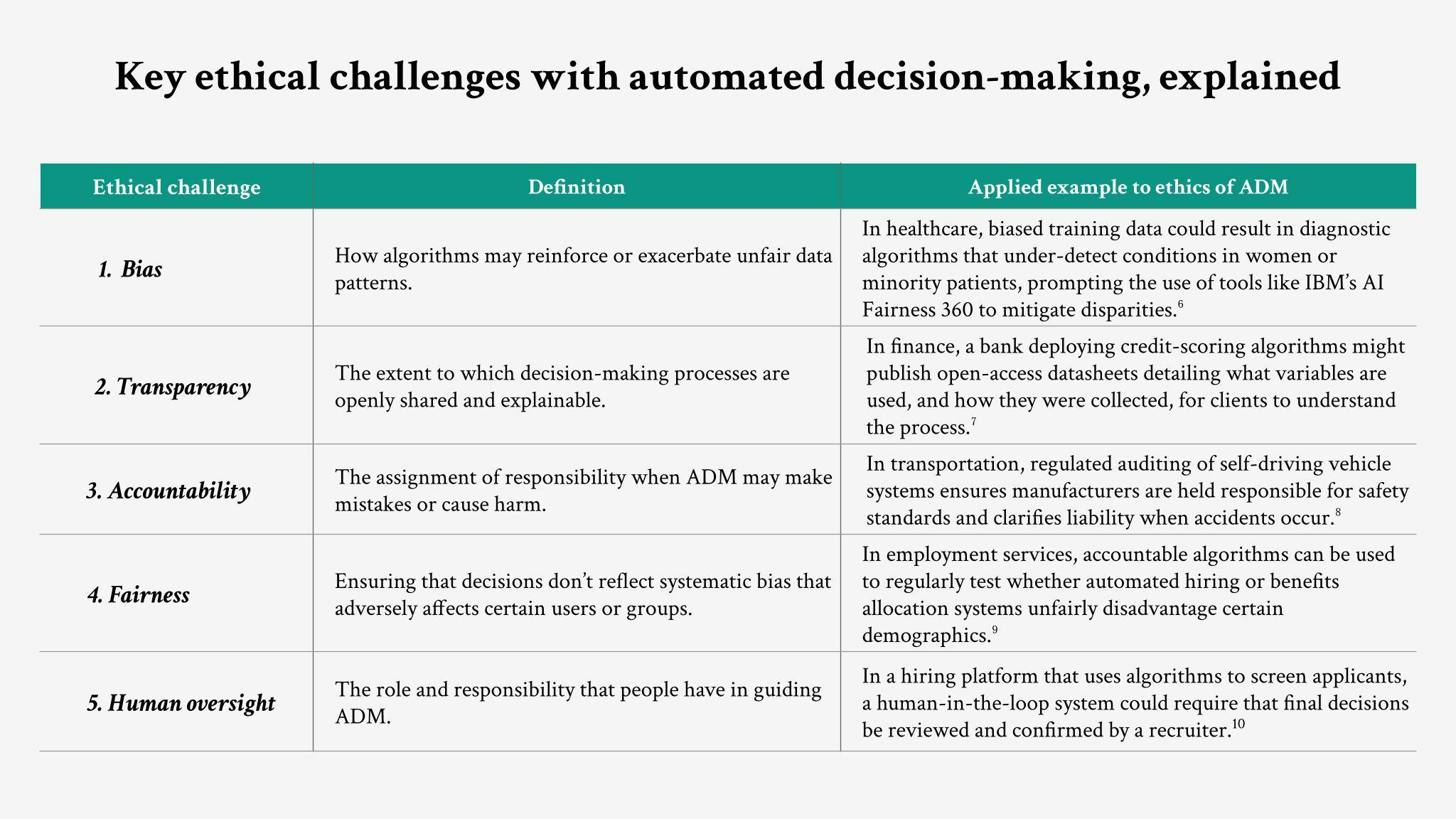 In our discussion on the ethics of ADM, we must consider what the key ethical concerns are when employing these systems. These challenges highlight how automated systems not only make technical decisions, but also shape trust and accountability in human terms: